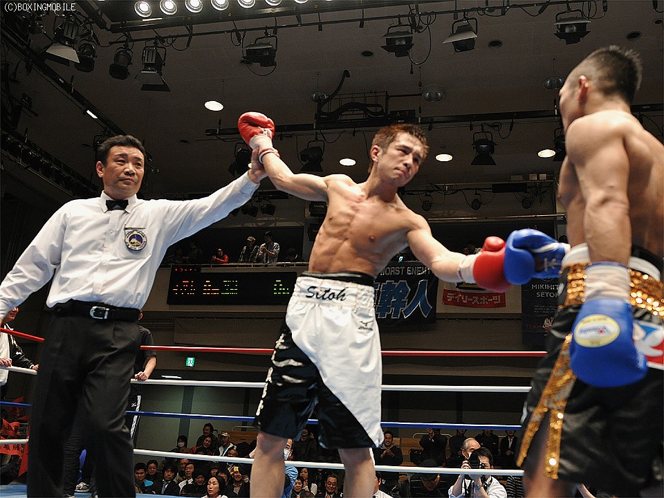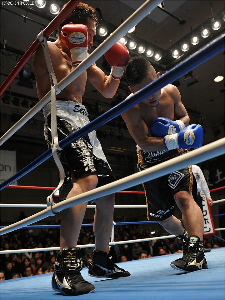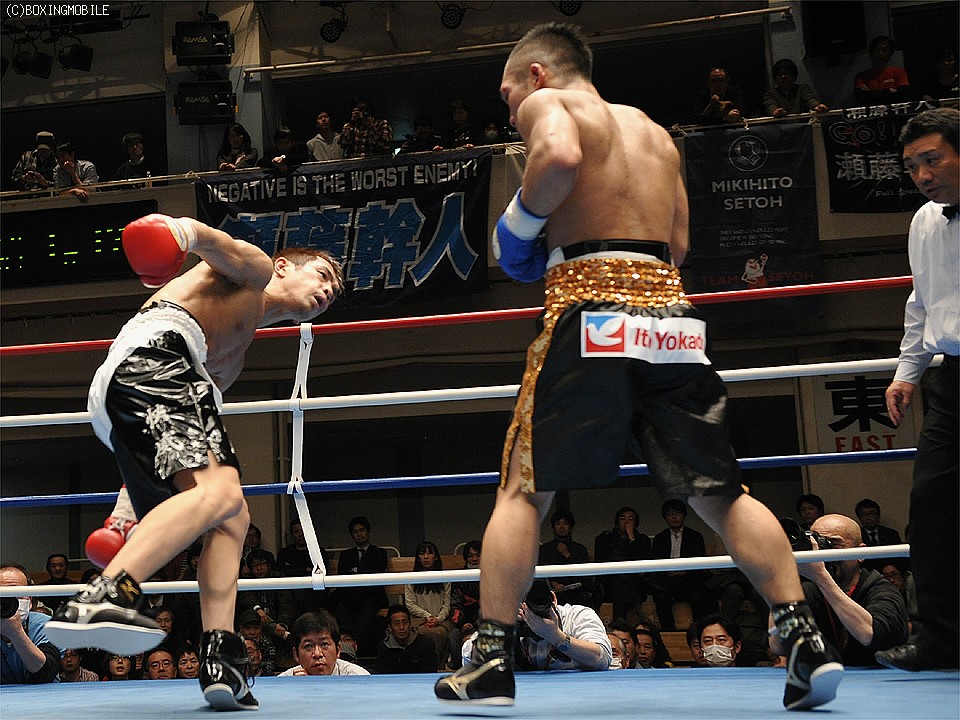 試合:瀬藤の巧さが光る!!立ち上がり瀬藤はジャブで距離を測り、右ストレート・右アッパーを浴びせる。中村は上体を振ってワンツー・左フックで詰めるが、瀬藤は固いブロックでヒットを許さない。中盤、瀬藤は鋭いジャブを突き刺し、右ストレートで中村を仰け反らせる。ここで中村も距離を潰そうとワンツーをヒットさせるが、瀬藤の巧みなバックステップに距離を取られ、連打を打ち込めない。最後まで中村はワンツーで前に出るが、瀬藤がバックスッテップからジャブ・ワンツーでポイントを奪った。