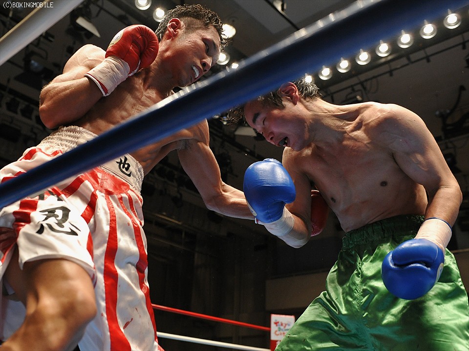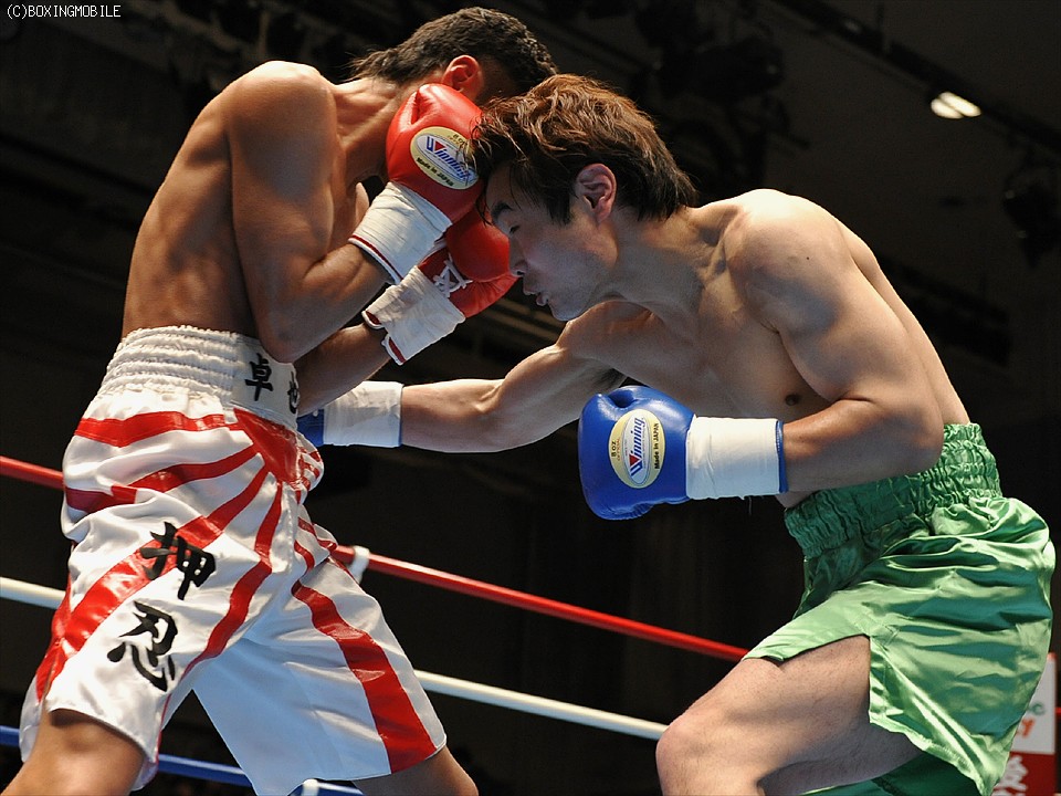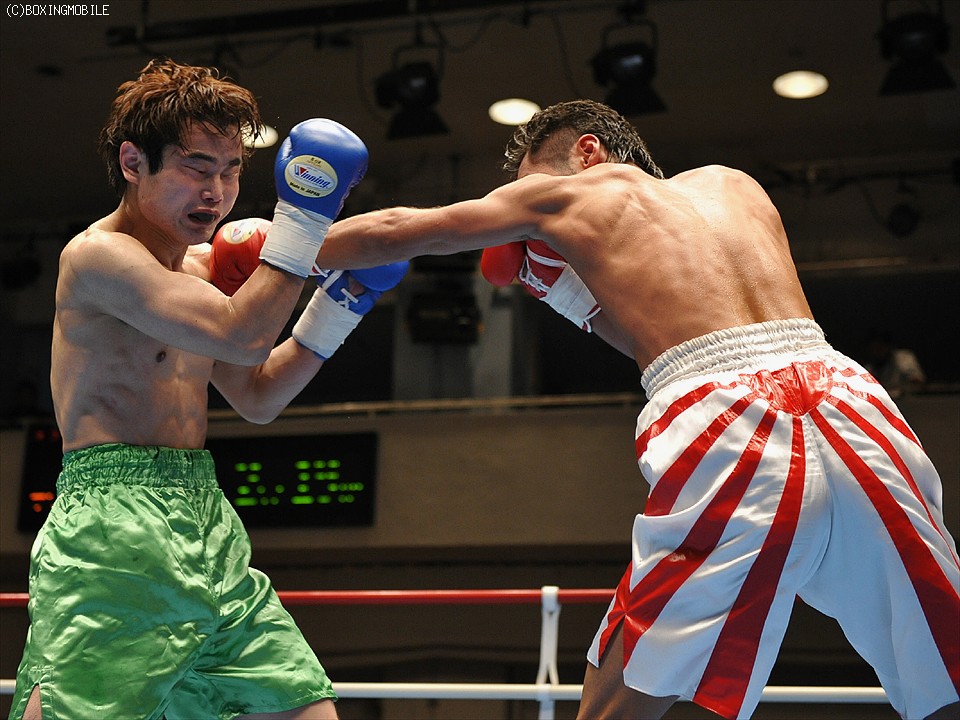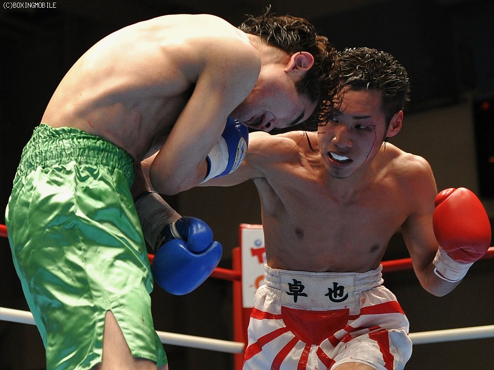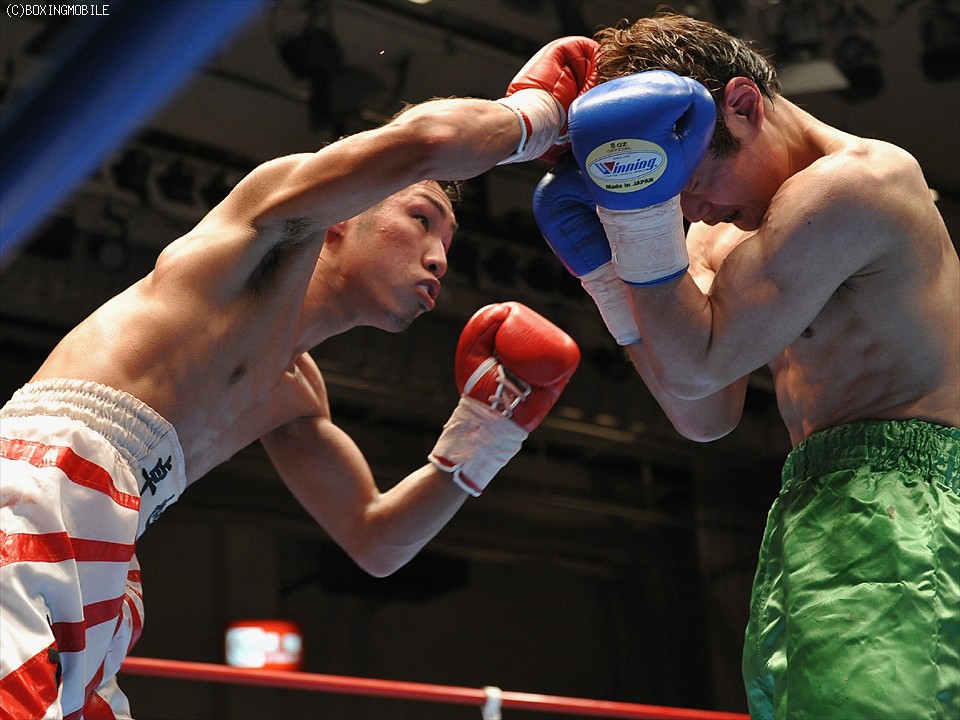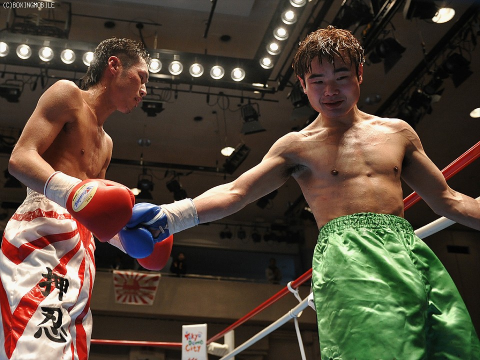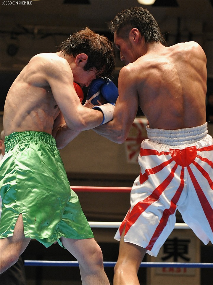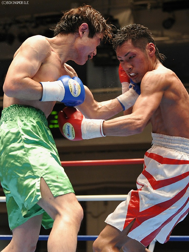 試合:渡邉の左が冴える!!河井はガードを固め前に出るが、渡邉はジャブで距離を測り左ボディで突き上げ、右ストレートをクリーンヒット。中盤、河井も下がらずワンツー・左ボディで詰めるが、渡邉はバックステップから左ボディ・左アッパー・左フックと巧みな左でポイントアウト。最後まで河井は諦めず前に出るが、渡邉はブロックでヒットを許さず、足を使い距離を作っては的確な左ボディ・左アッパー・右ストレートを浴びせ続け、最大で7ポイント差を奪った。