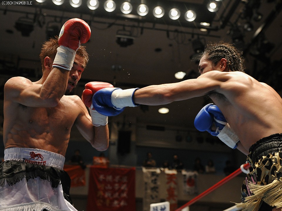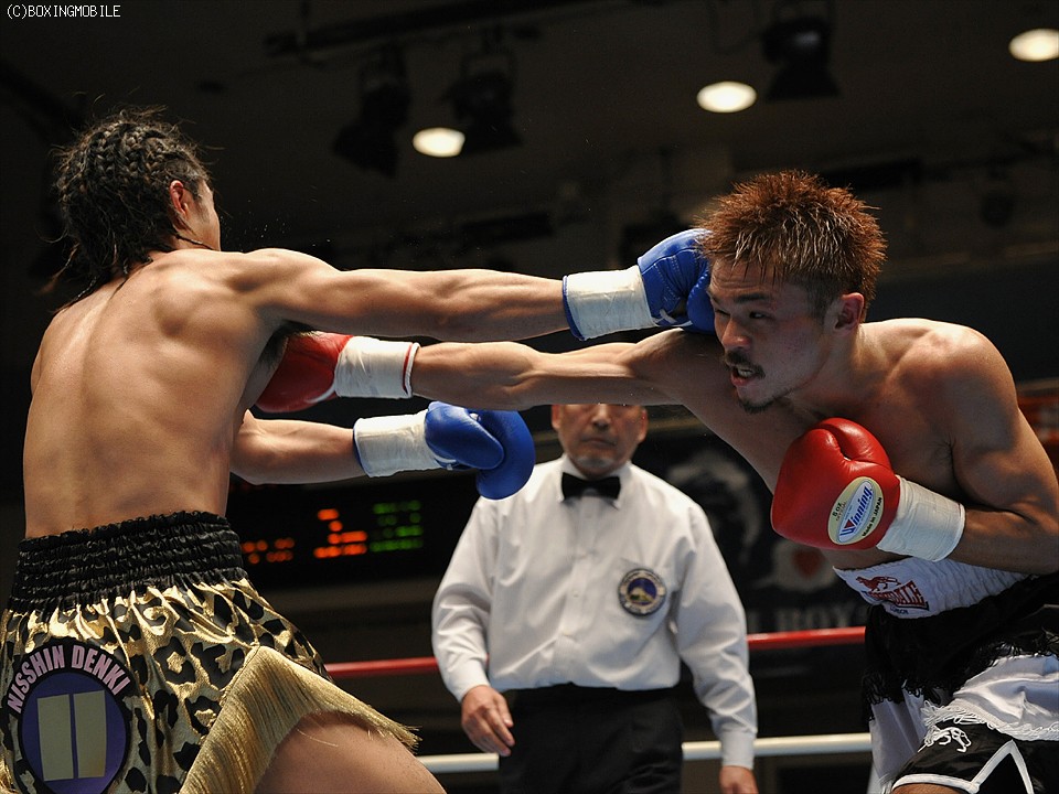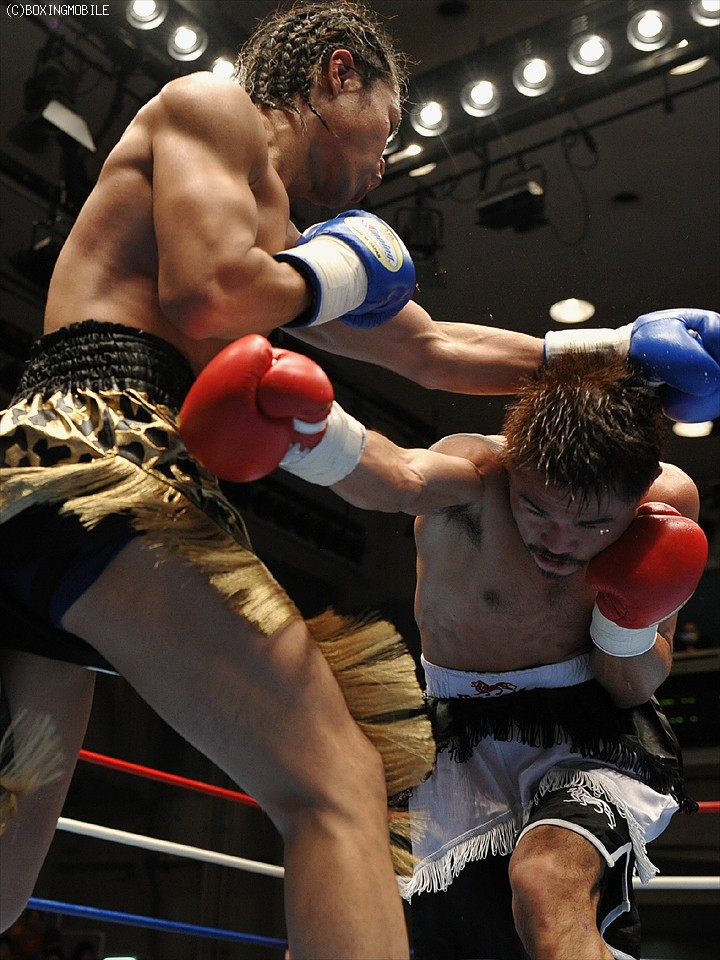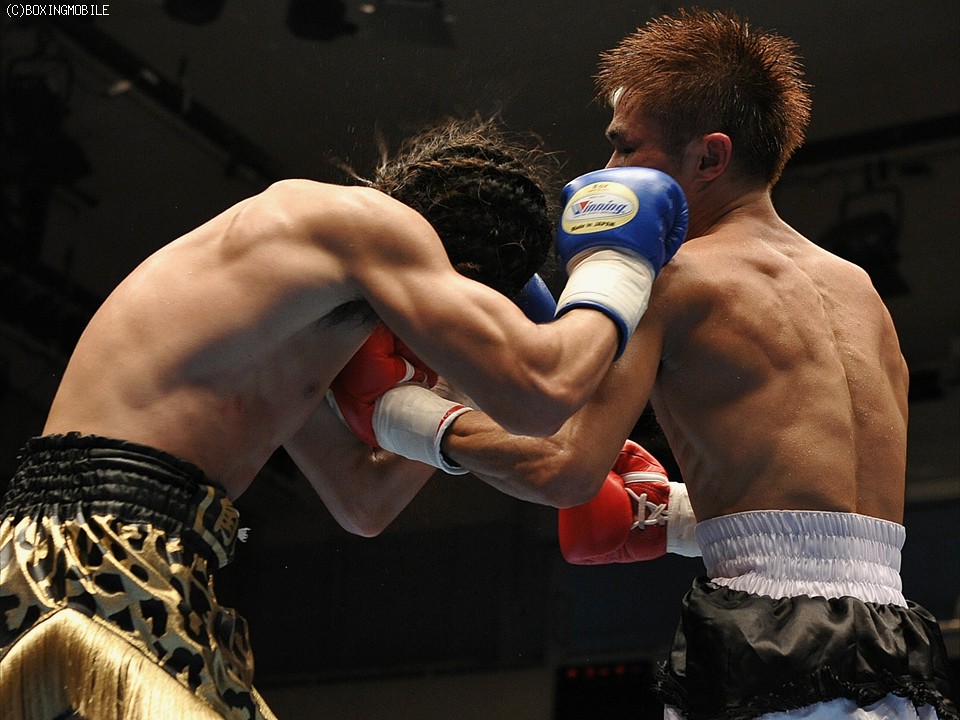 試合:河野の右ストレートが貫く!!サウスポー石川に対し、河野はガードを固め圧力を掛ける。対する石川はバックステップで距離を作り、左ストレートを河野に浴びせる。しかし4R、河野は圧力を強め距離を潰すと、右フックで石川のアゴを打ち抜きダウンを奪う。すると5R、ペースを握った河野は距離を詰め、石川に右ストレート・左アッパーでダウンを追加。立ち上がる石川は足元が定まらず、河野の左フックでロープを背負い右ストレートで顔面を弾かれると、堪らずレフェリーが割って入った。河野は10年9月のトマス・ロハス戦から約1年6ヶ月、4試合振りの白星を飾り、完全復活となるのか…。