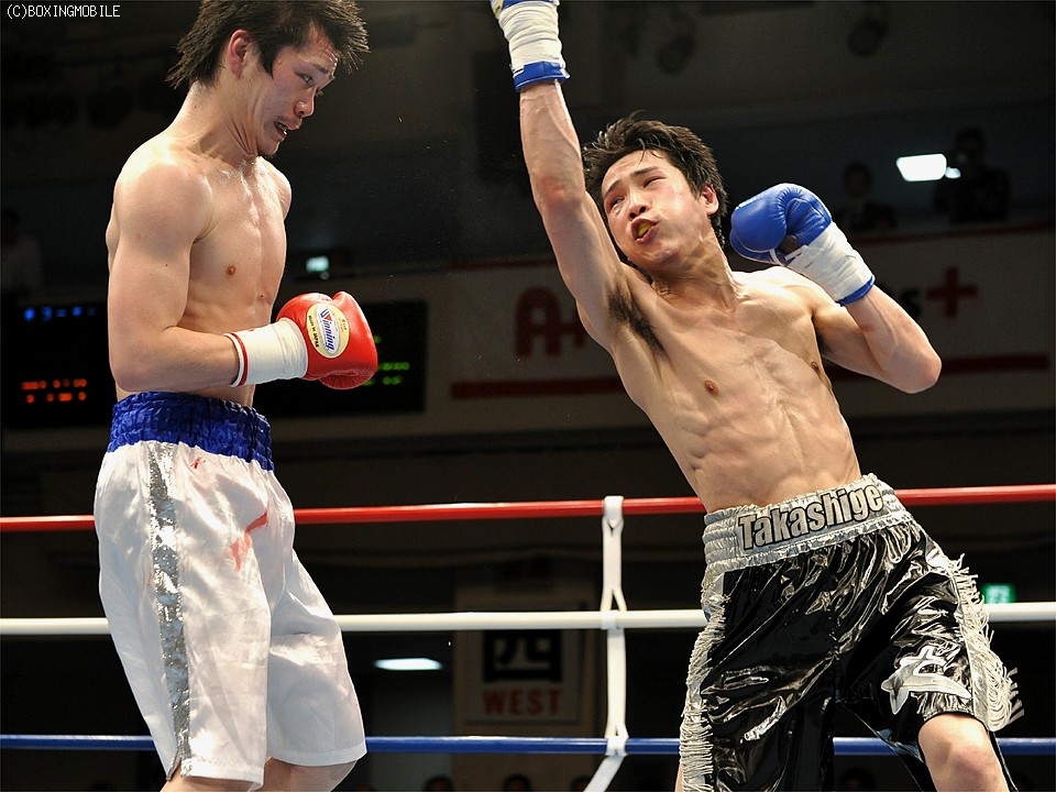 試合:高田が左ストレートでポイントアウト。序盤、高橋はプレスを掛け距離を詰めようするが、身長・リーチで上回る高田はジャブで出足を止め、左ストレート・左アッパーを浴びせる。中盤、高田は左ストレートで距離を取りたいが、高橋は上体を振り前に出て