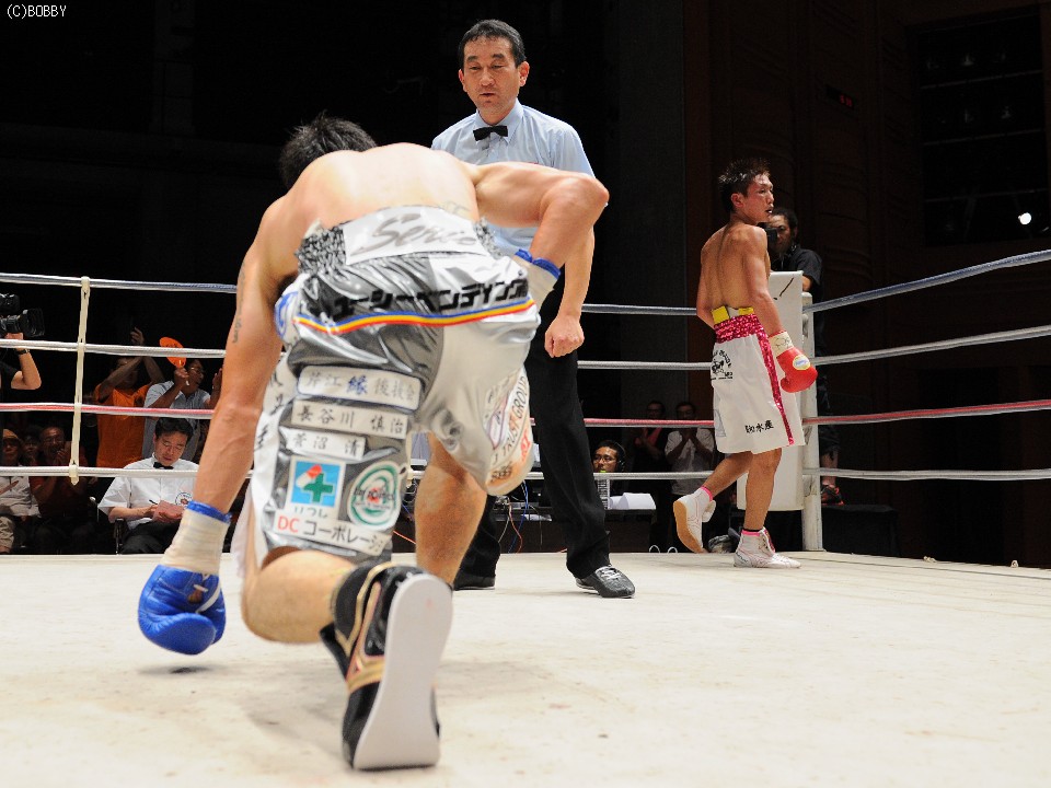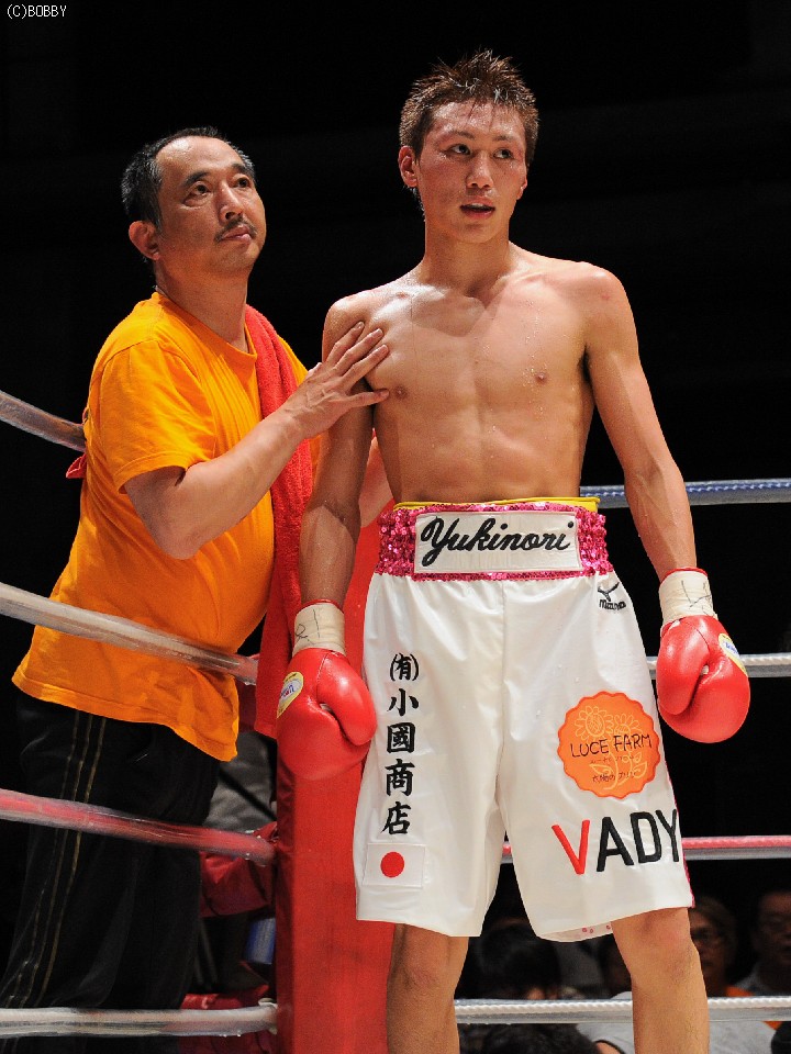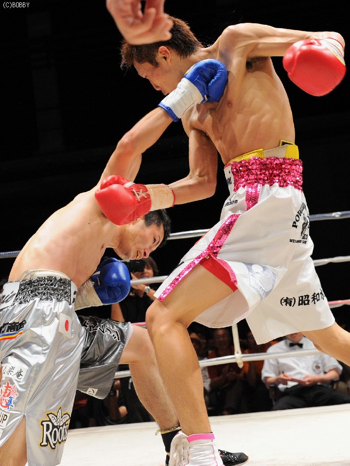 試合:1R、芹江の飛び込みぎわを狙う小國の右ストレートがヒット!2R、開始早々、小國の右ストレートが見事に決まり芹江ダウン。しかし、芹江は立ち上がりダメージを感じさせない動きで逆に芹江の大きなフックが小國の右こめかみをヒット!小國の膝が崩れかける。5R、再度、小國の左右のストレートが決まり、芹江ダウン!しかしここも、芹江は不屈の闘志で立ち上がり応戦する。終盤まで、変則的なボクシングを押さえ込んだ王者・小國の判定勝ち、2度目の防衛に成功!