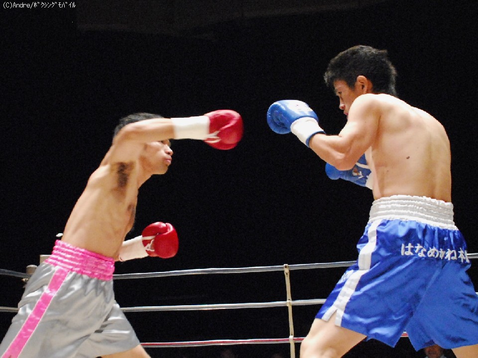 試合:序盤、長田が出足鋭く左ジャブ・右ストレートを西村の顔面に当てて行く。対して西村も飛び込む長田の打ち終わりを狙い、右ストレートを当てていく。中盤、疲れの見えた西村に対しラッシュをかける、西村が棒立ちになったところでレフェリーストップ!長田のTKO勝利!