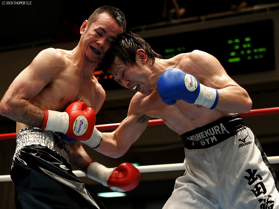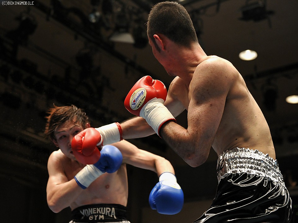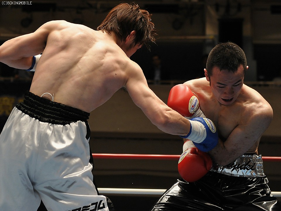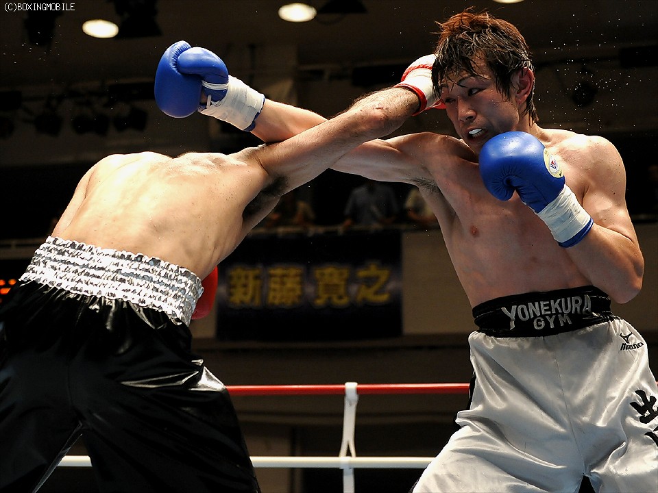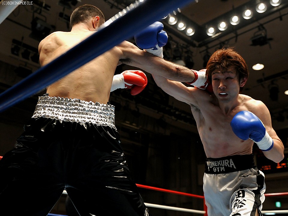 試合:首を振ってガードを固めて前にでる出田に対し、サウスポーの新藤は左アッパーをカウンターで合わす。終始前に出続ける出田に新藤もジャブ、ワンツーに右フック、左ボディで応戦。接近戦の中、的確に有効打でポイントを稼いだ新藤の判定勝利。